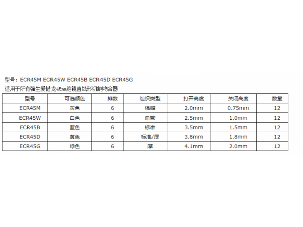 產(chǎn)品說明:美國強(qiáng)生 ETHICON ECR45B/ECR45W/ECR45G/ECR45D /ECR45M腔鏡直線形切割釘倉當(dāng)前注冊(cè)號(hào):國械注準(zhǔn)20193020209注冊(cè)證名稱:腔鏡直