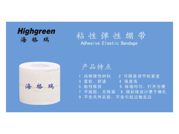 產(chǎn)品說明:本產(chǎn)品由無紡布、全棉紗加入氨綸彈力絲,表面覆以天然乳膠制成,具有高彈性、強(qiáng)自粘力、柔軟、舒適的特點(diǎn)。
